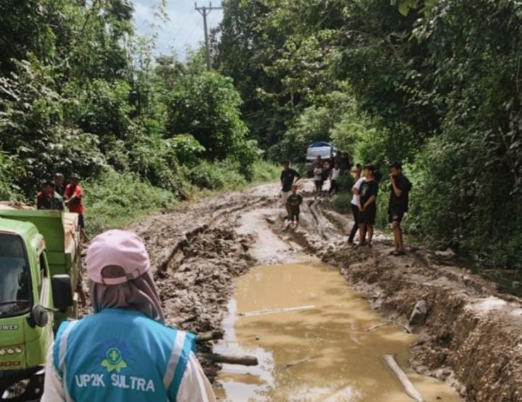 Saripa, Srikandi PLN saat melakukan inspeksi jaringan di Desa Latoma Kabupaten Konawe. Untuk sampai ke desa tersebut, ia menempuh perjalanan selama delapan jam dari Kota Kendari dan melalui jalanan berlumpur. FOTO DOK PLN