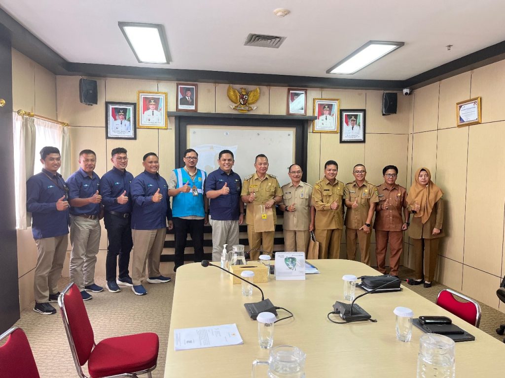 Manajer PLN UP2K Khatulistiwa Danny Baharaja Pasaribu, (keenam dari kiri) dan tim, foto bersama Bupati Bengkayang Sebastianus Darwis, S.E., M.M., (keenam dari kanan) dan Jajaran di Ruang Rapat Kantor Bupati Bengkayang.(FOTO/DOK/PLN)